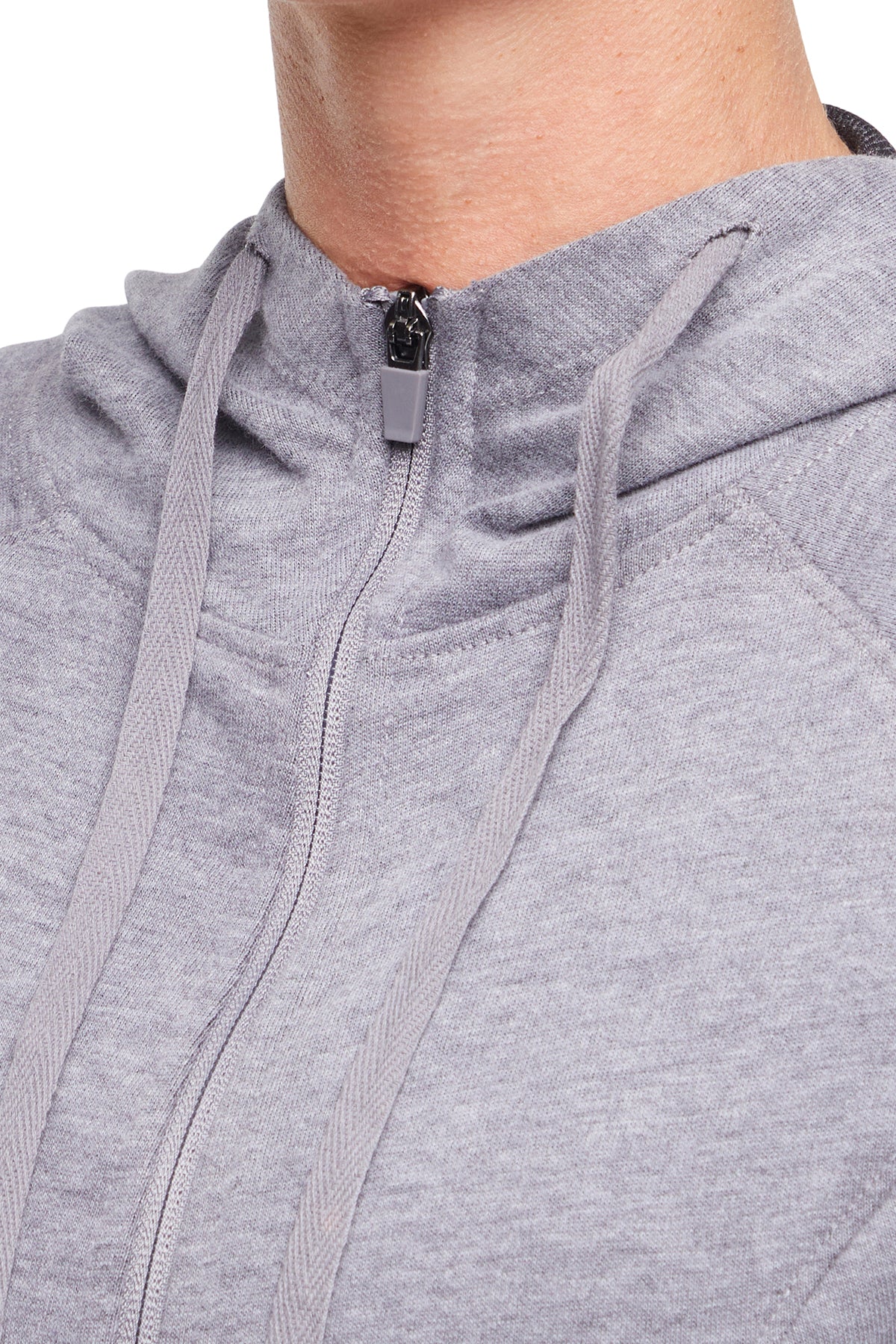 Cozy up in style with this Lyla full zip-up hoodie! Crafted in a soft French knit terry, it features a sleek silhouette, drawstring hood, and ribbed hem for a snug fit. Whether you're warming up or winding down, this piece adds a fresh, feminine touch to your activewear lineup.