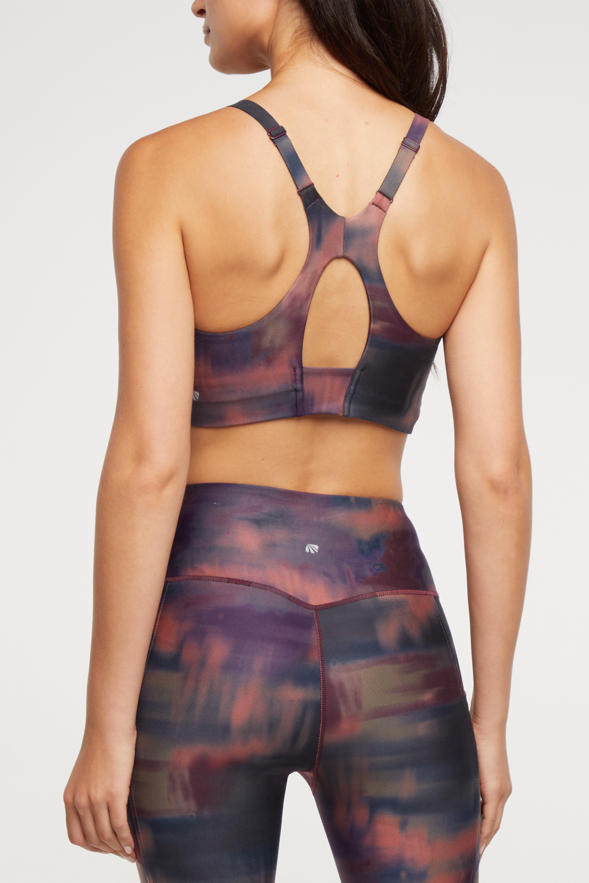 Style and function combine to create this medium-impact sports bra, featuring adjustable shoulder straps, a cut-out back, and a soft-brushed, sweat-wicking finish.