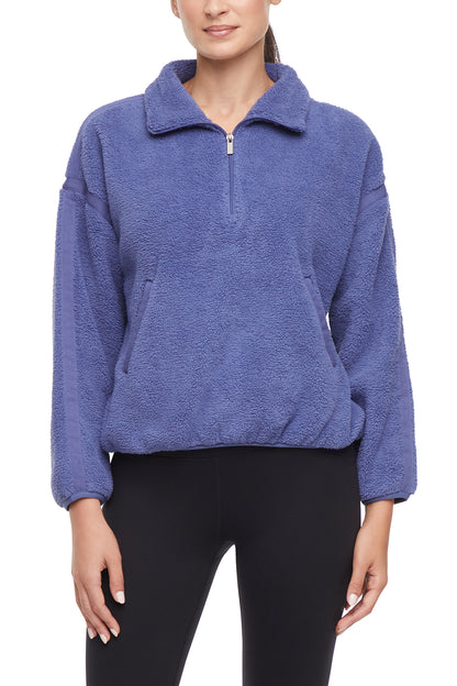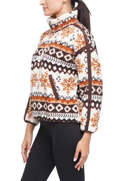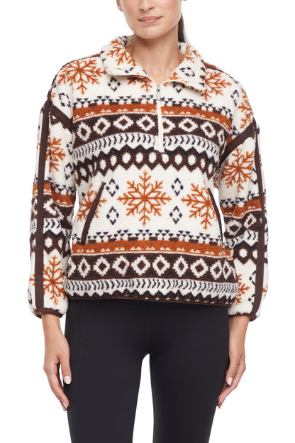 Bundle up in bold winter style! This ultra-cozy sherpa 1/4 Zip pullover brings frosty flair with its vibrant colors and soft fleece feel. The half-zip front and roomy pouch pocket make it your go-to for chilly days with a festive twist!