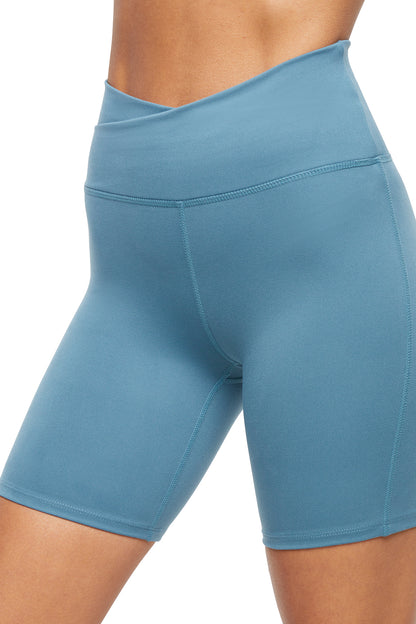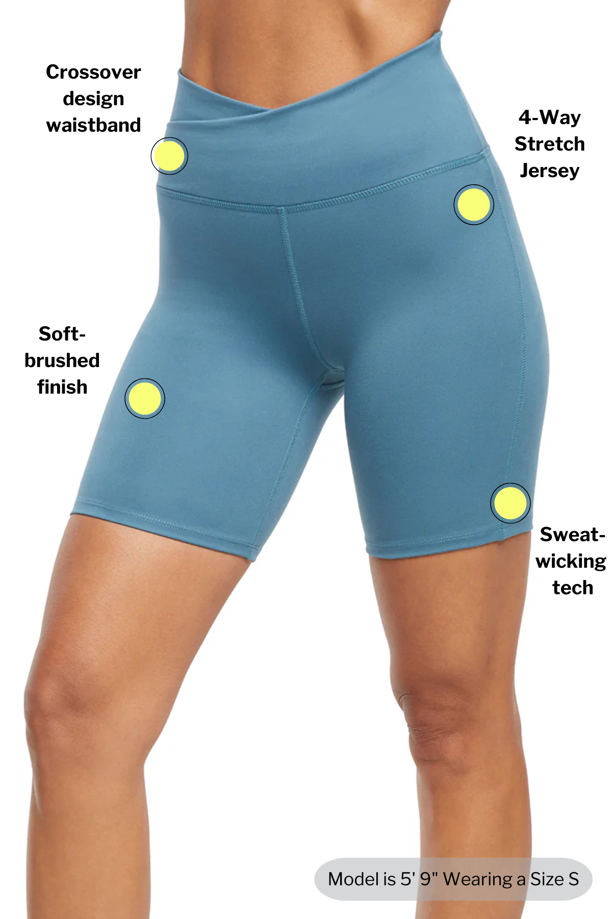Lotus pose will never feel better than in this soft-brushed, sweat-wicking short, featuring an elastic-free crossover waistband that won’t dig in, perfect for lasting comfort through long days and tough sweat sessions.