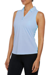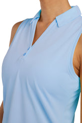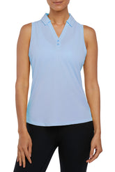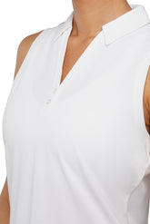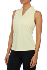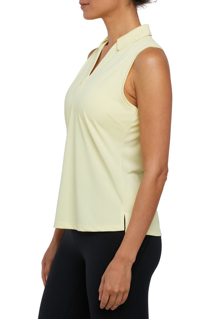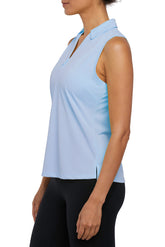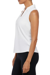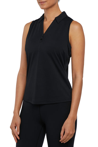 Crafted from textured pique fabric, which is breathable and won't cling to the body, this sleeveless, relaxed-fit top features a V-neck polo collar with a button placket and short side slits for extra mobility.