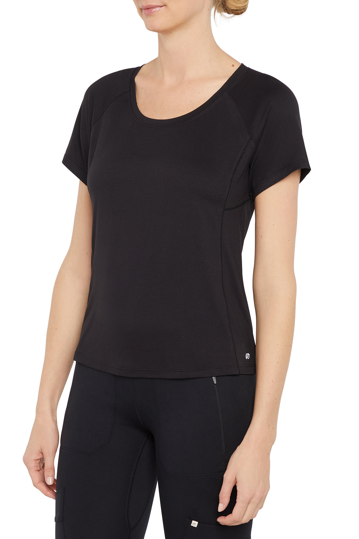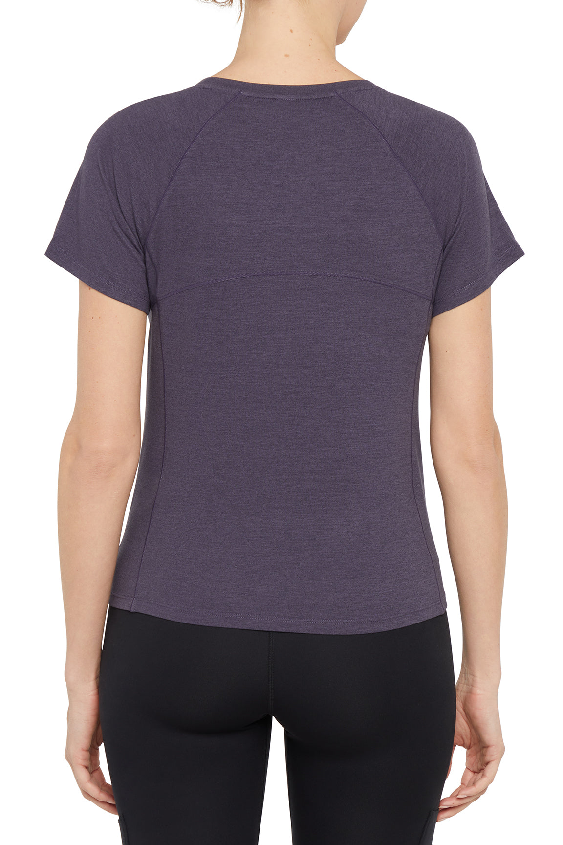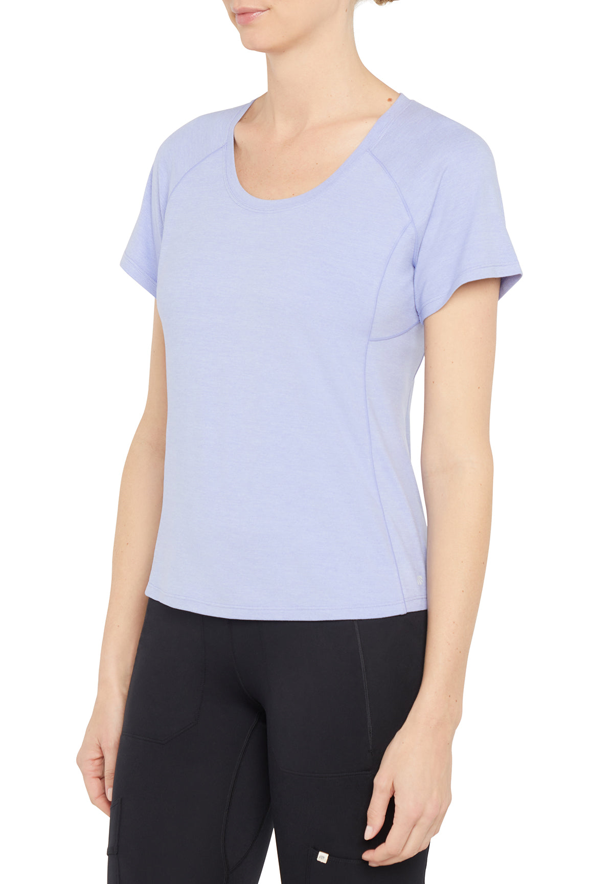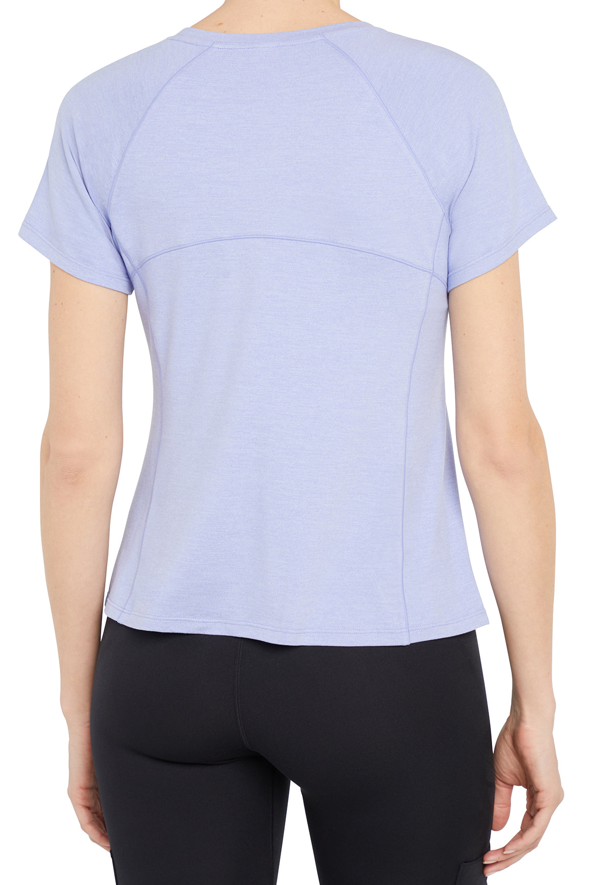 Crafted from our LuxTouch fabric, soft-brushed inside and out for ultimate comfort, this crewneck top features a paneled design with raglan-style short sleeves and princess seams.