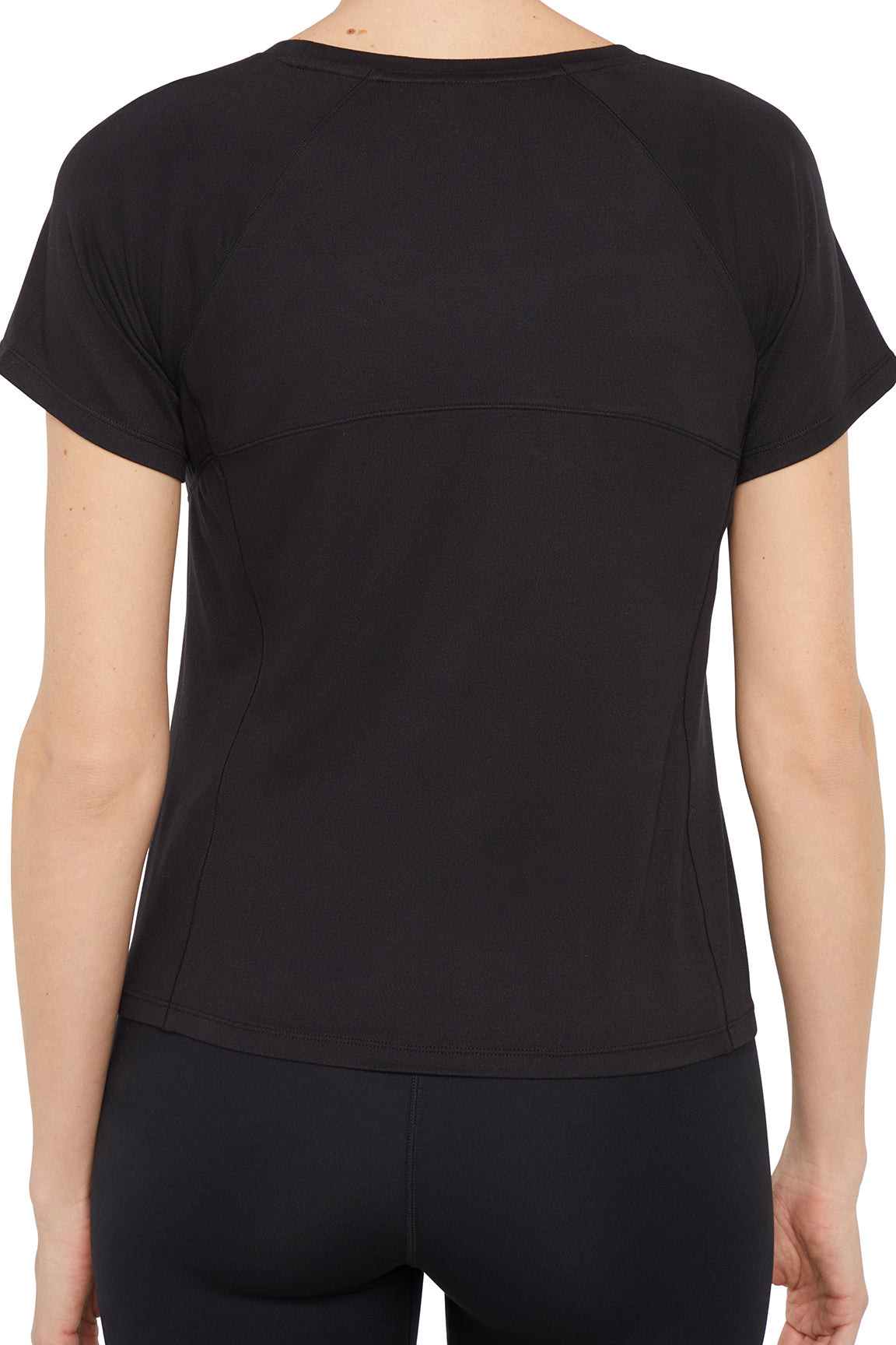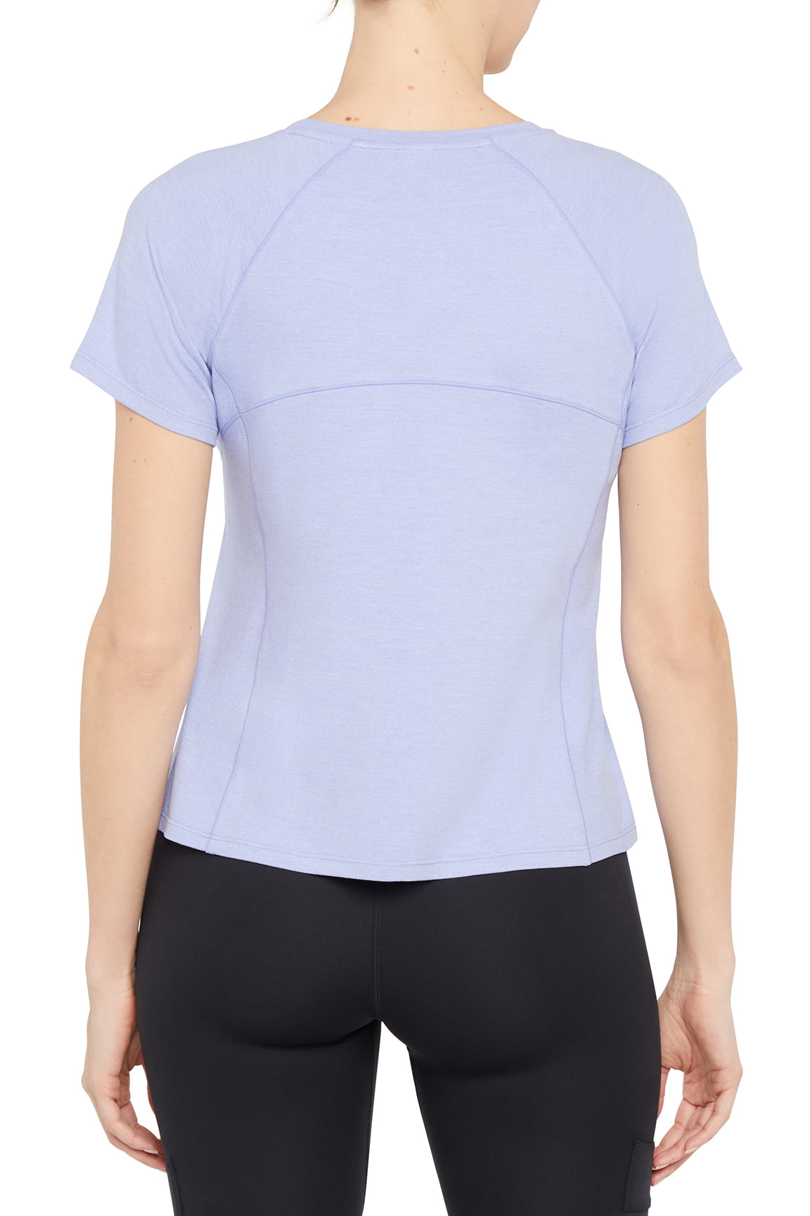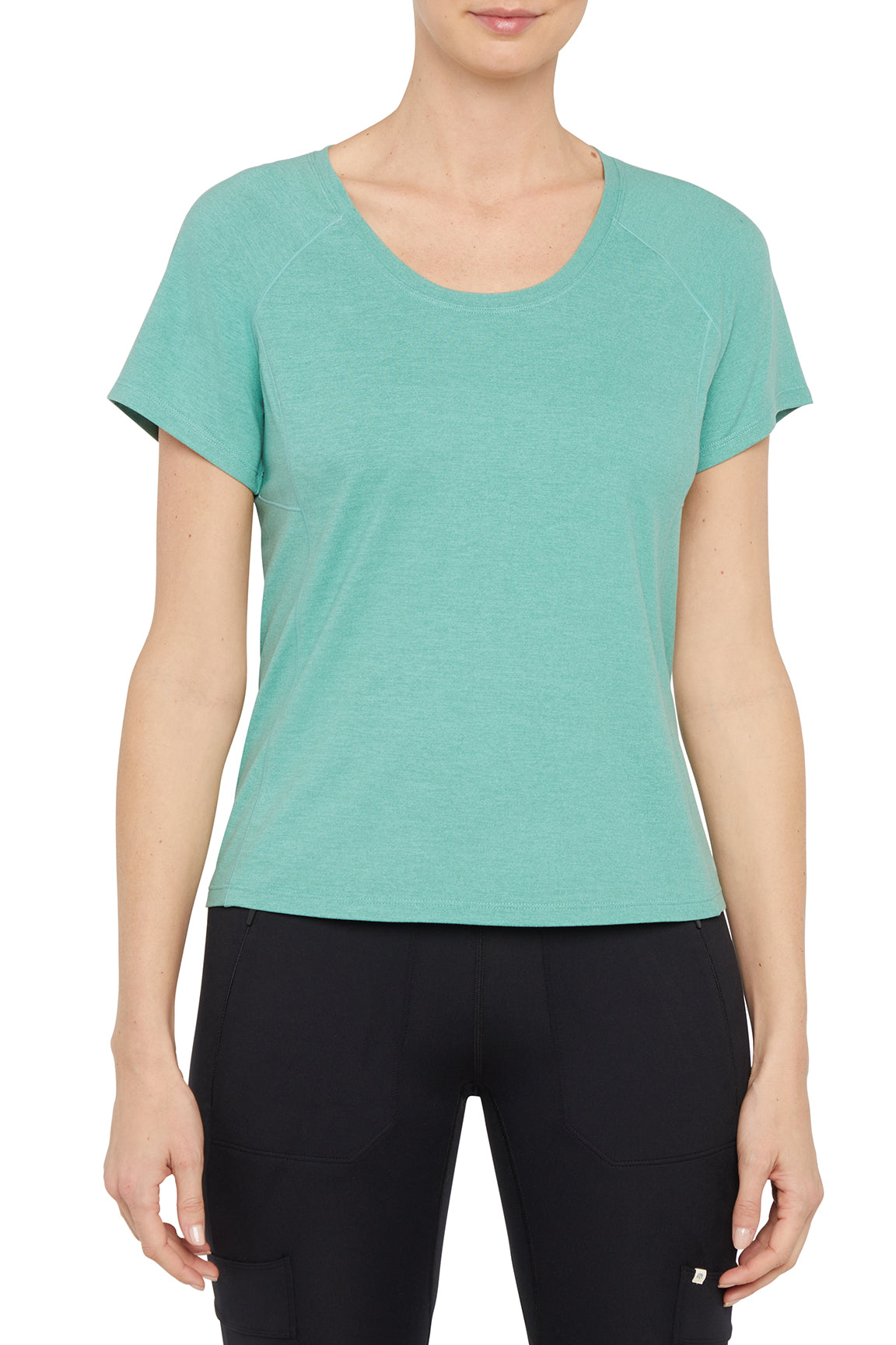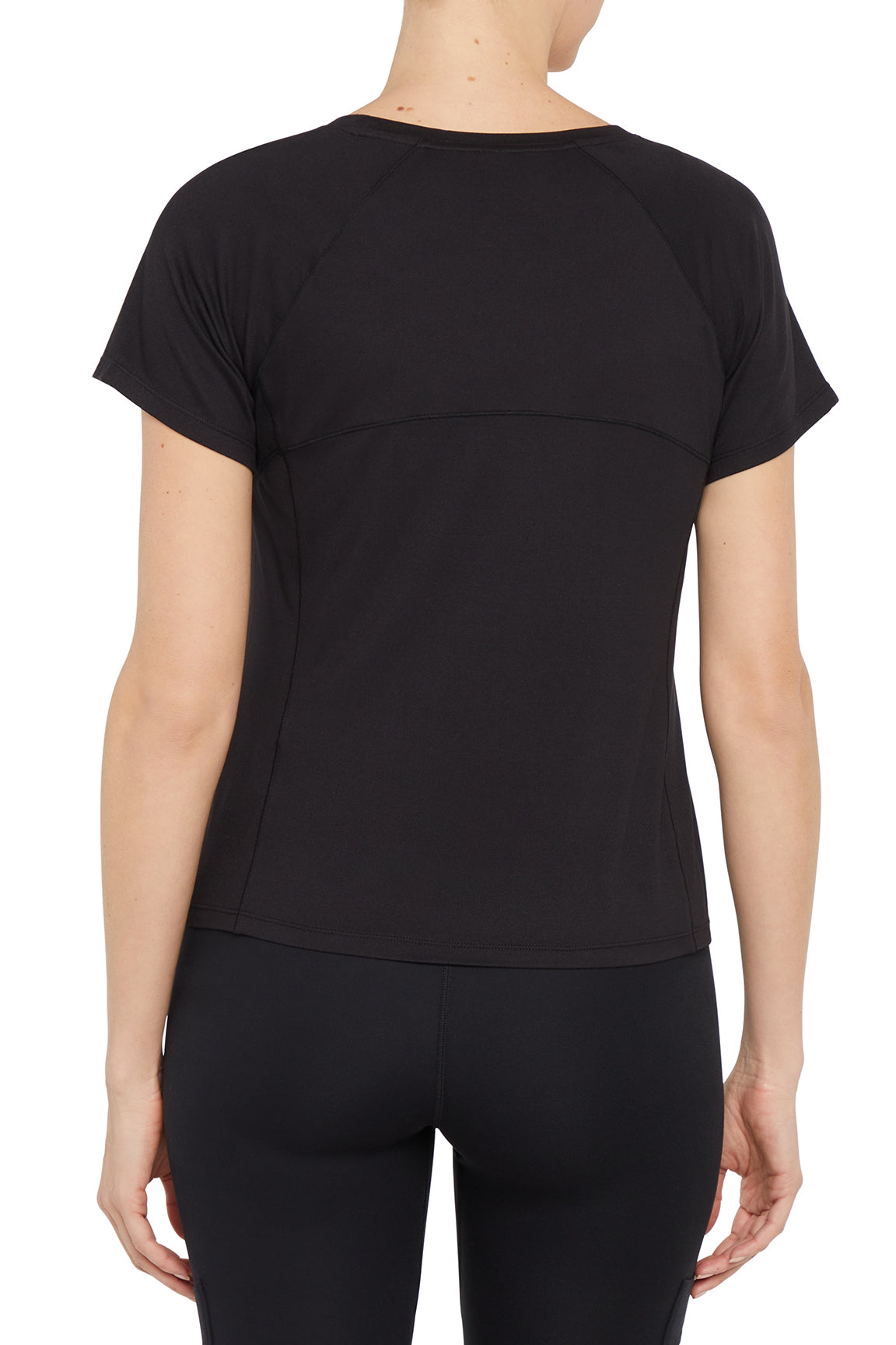 Crafted from our LuxTouch fabric, soft-brushed inside and out for ultimate comfort, this crewneck top features a paneled design with raglan-style short sleeves and princess seams.