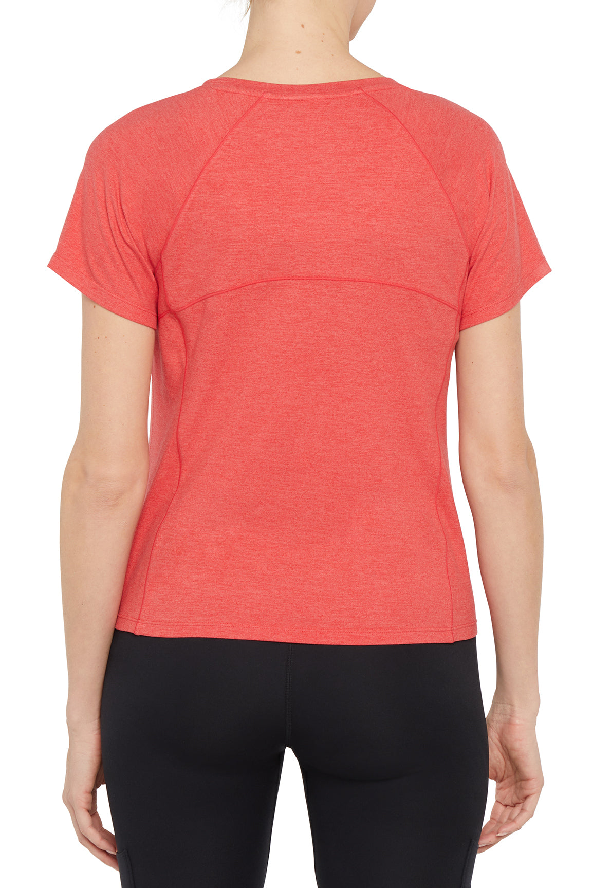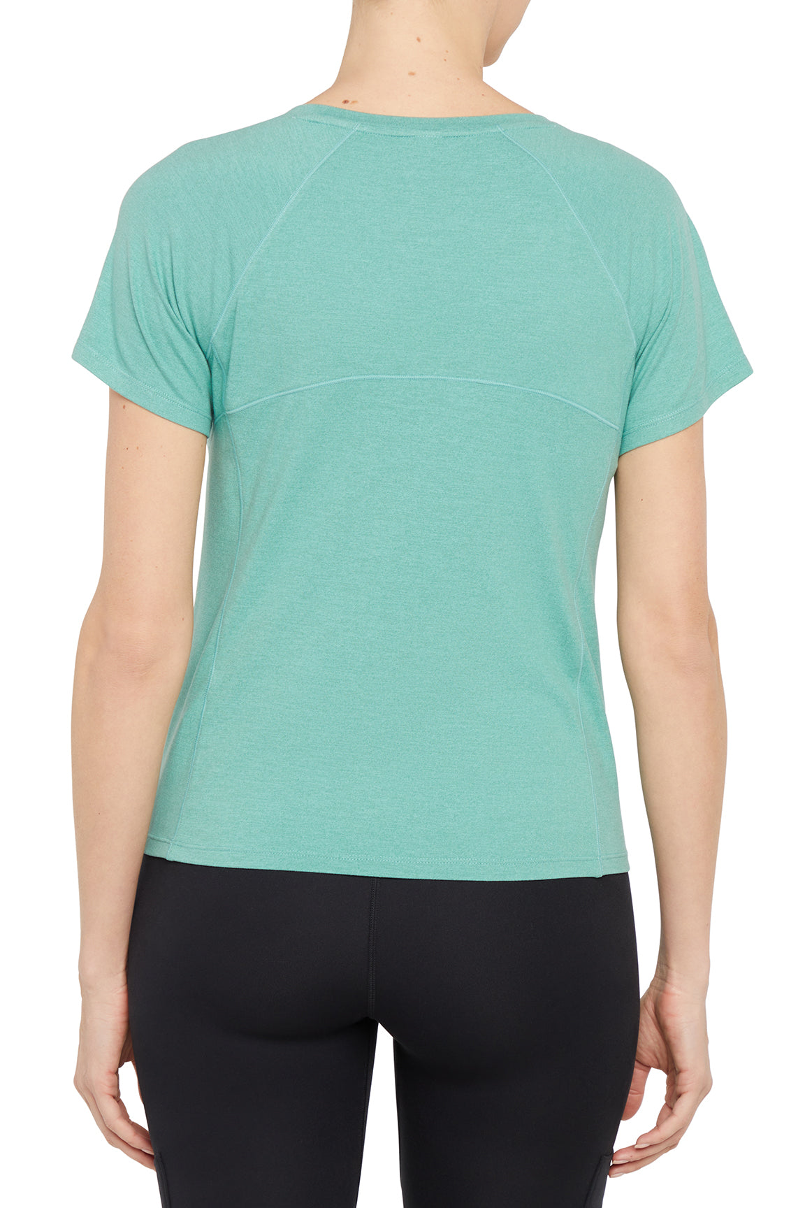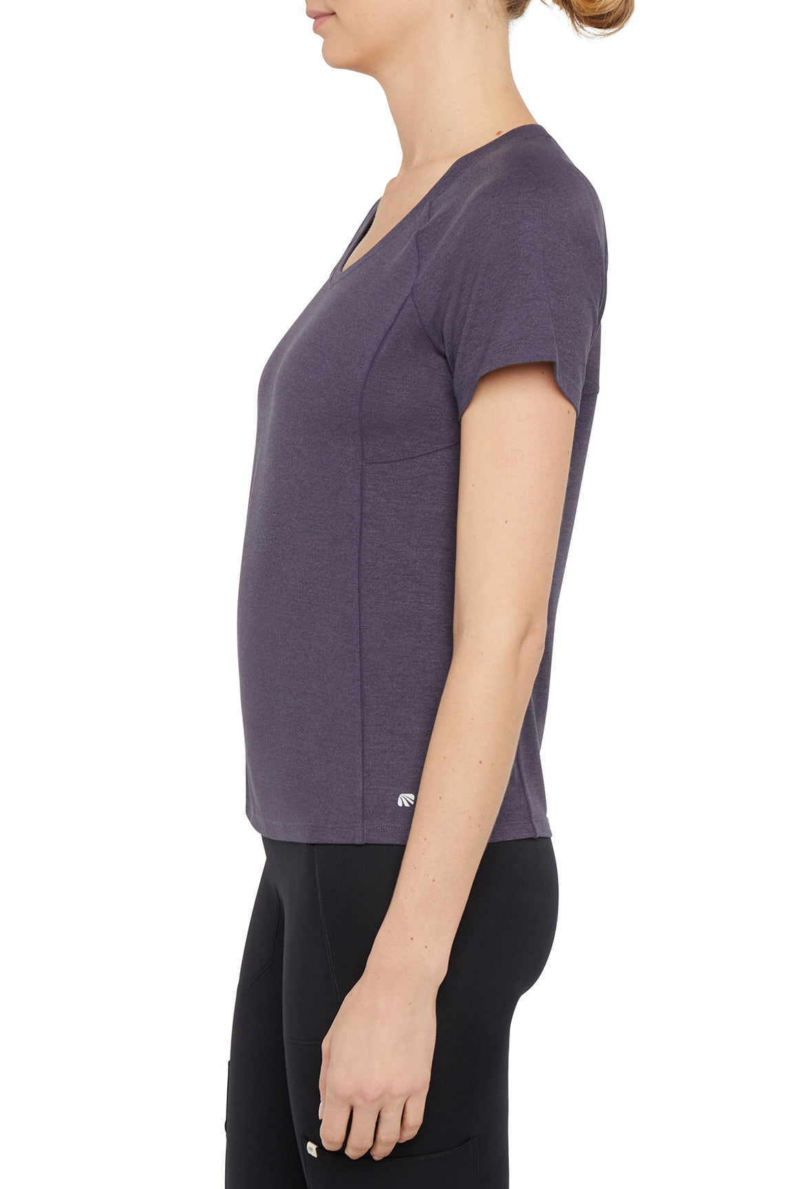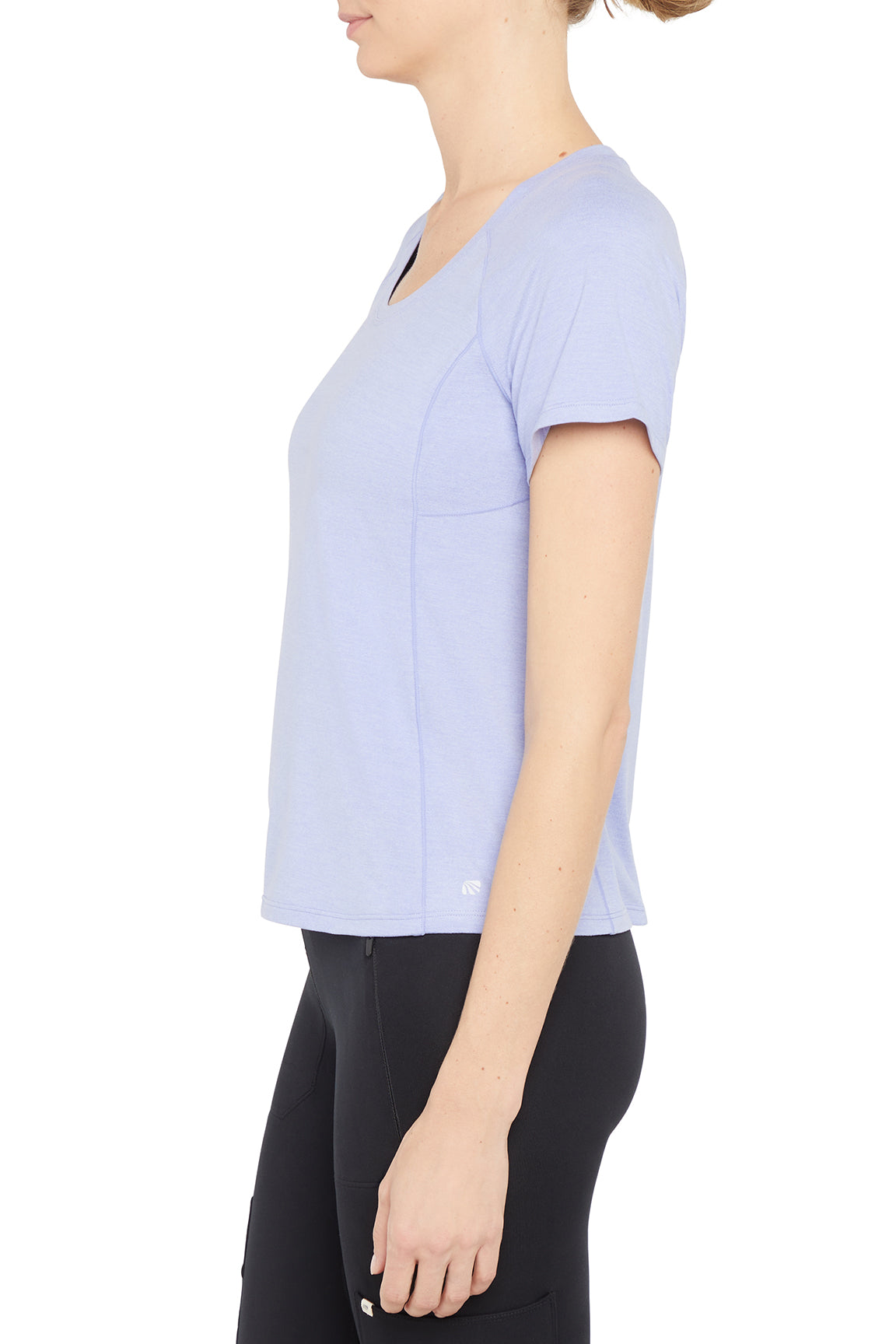 Crafted from our LuxTouch fabric, soft-brushed inside and out for ultimate comfort, this crewneck top features a paneled design with raglan-style short sleeves and princess seams.