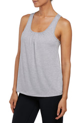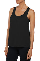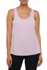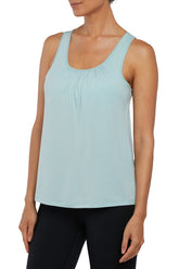 This relaxed-fit tank is more than meets the eye: Cut from lightweight jersey with UPF protection, it features a round neckline with shirred accenting and an inner shelf bra for built-in support.