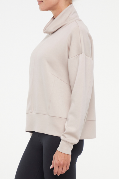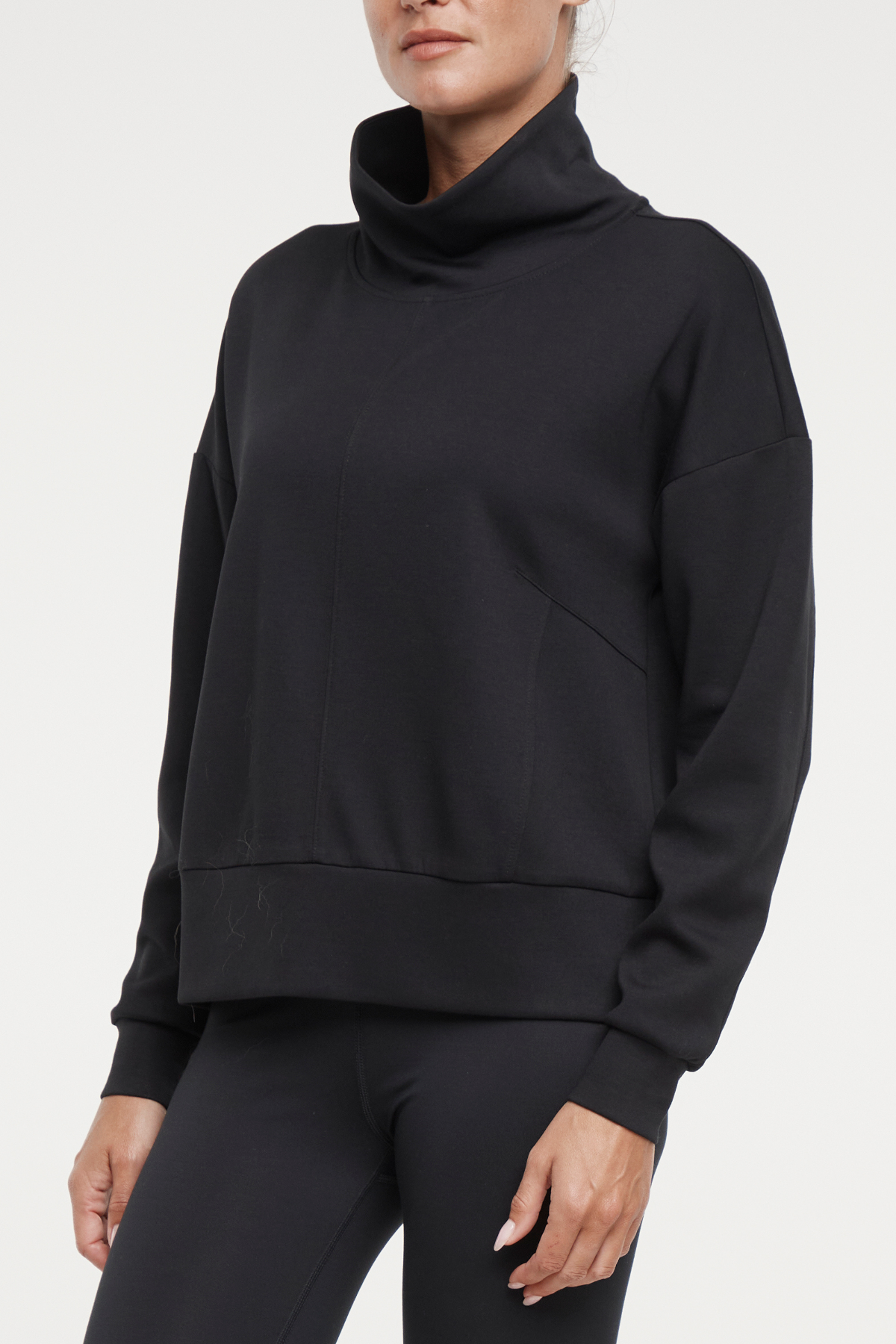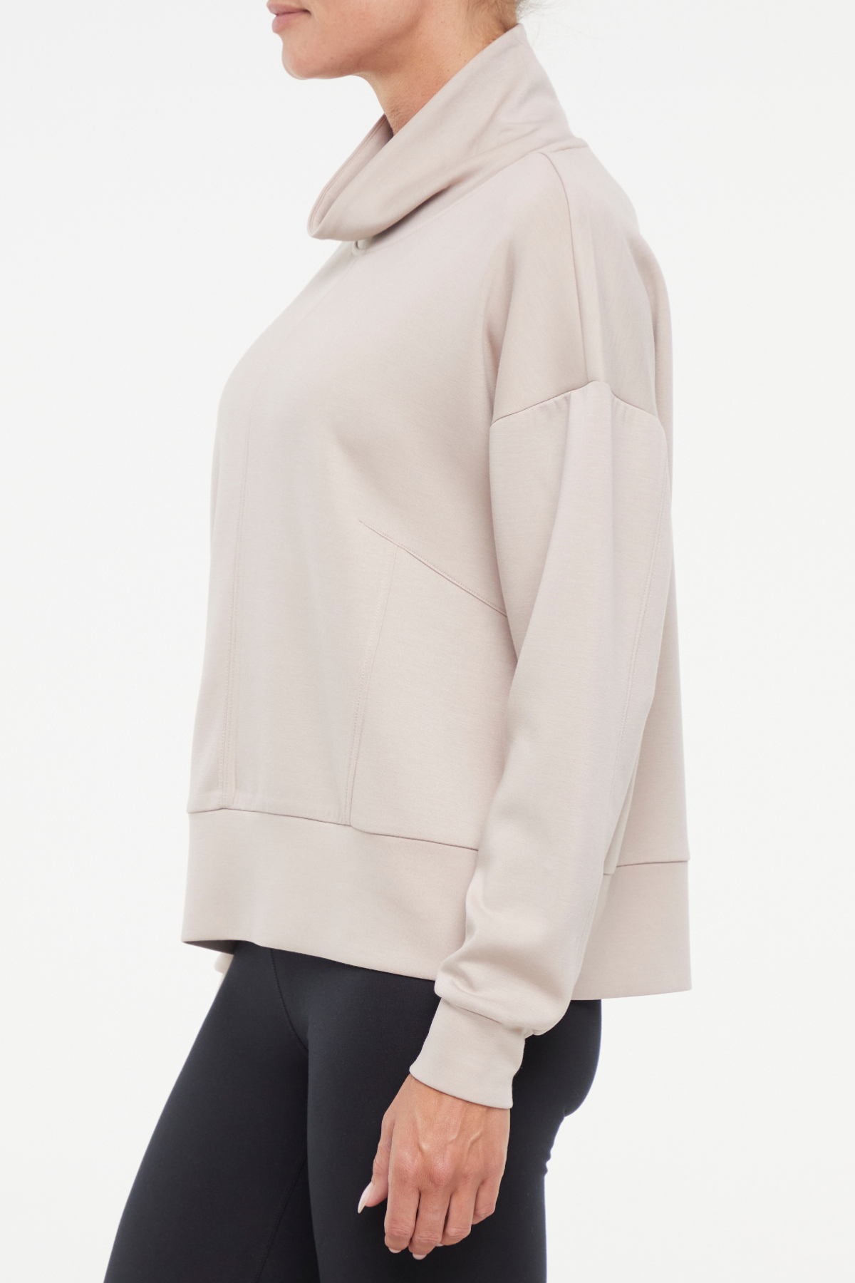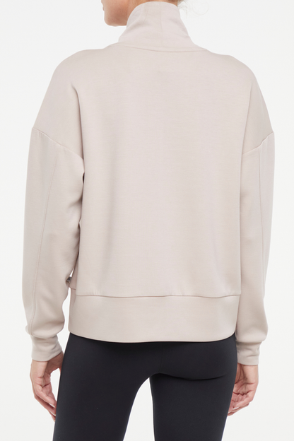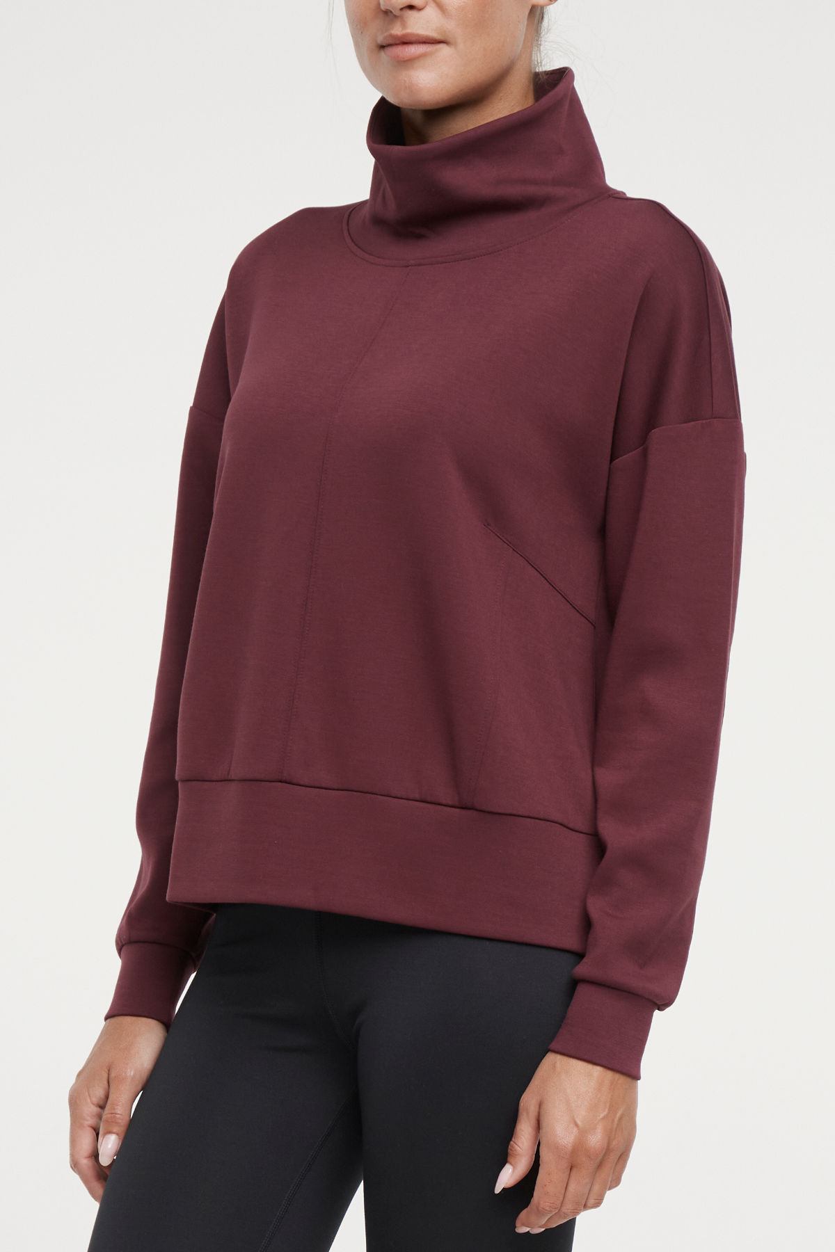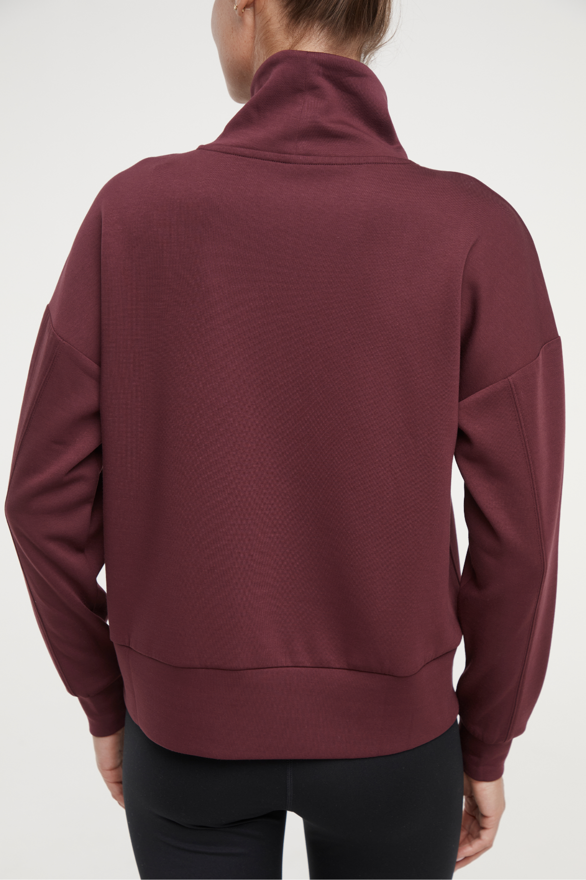 A loose fit cut from scuba knit, this half-zip pullover features a high mockneck, raglan-style long sleeves, a banded hem, and a convenient kangaroo pocket to hold essentials.
